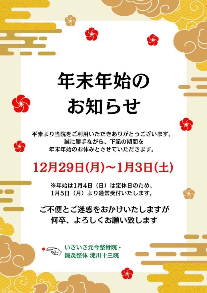 年末年始のお休みにつきまして、下記の通りお知らせいたします。